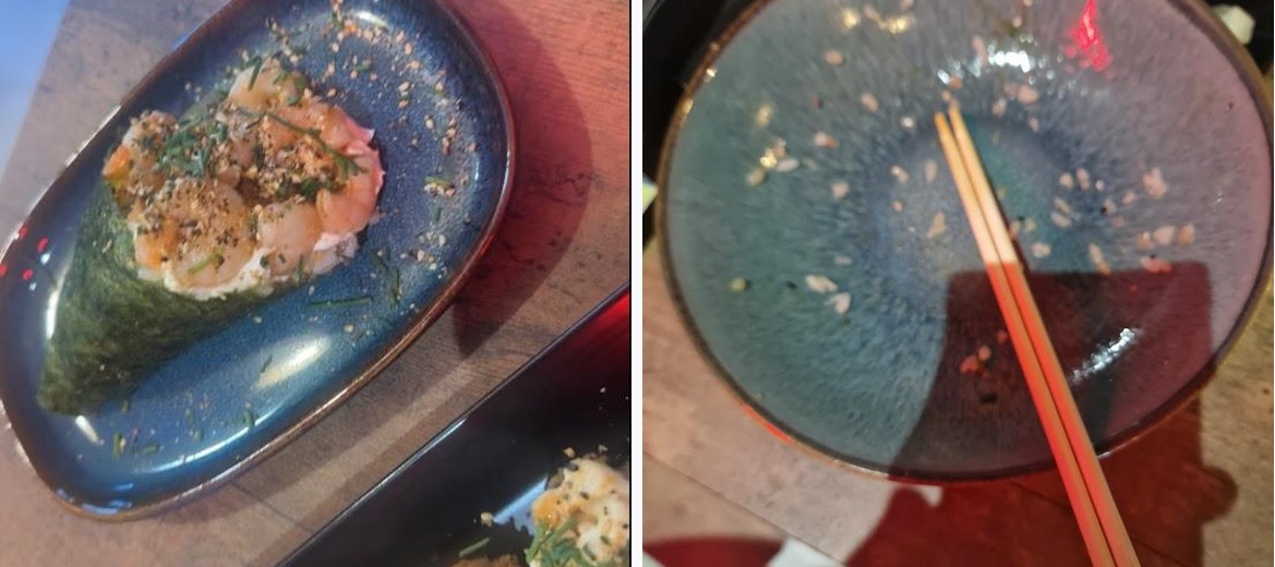 Delicious. Had the Salmon poke. A bowl of rice, topped with mango, tomato, avocado, cucumber pickled, crispy onions, cream cheese and the salmon. Wonderful dish. Light citrus notes from mango. Perfect pickled cucumber not strong not weak. No photos as we are hungry today w no lunch.