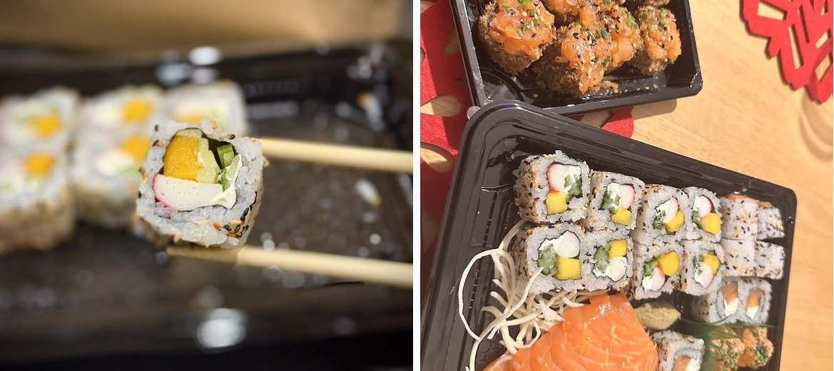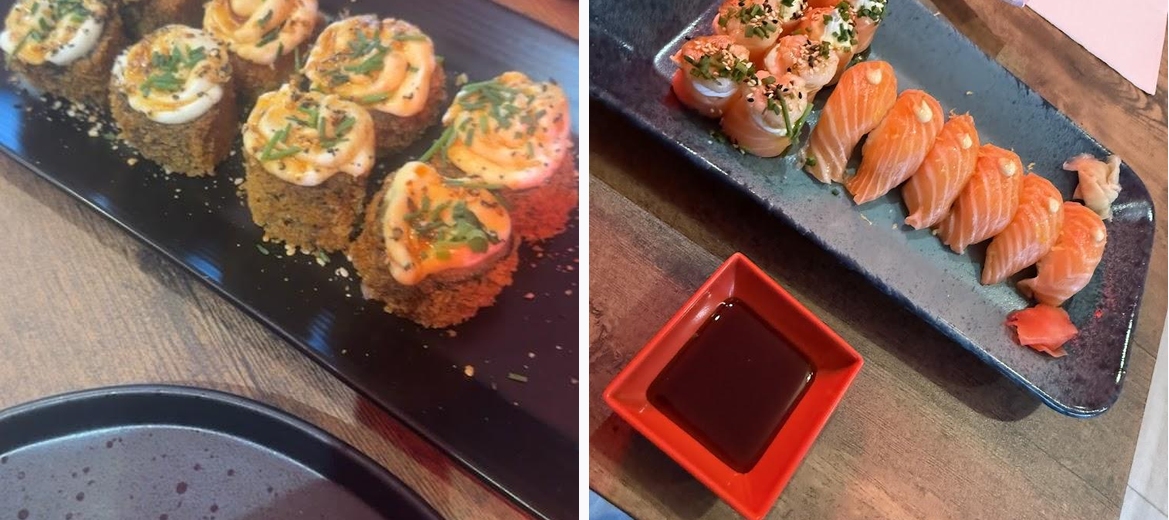 Kisushi serves over 40 different meals, including sushi varieties like uramaki and hossomaki, hot meals, and desserts.